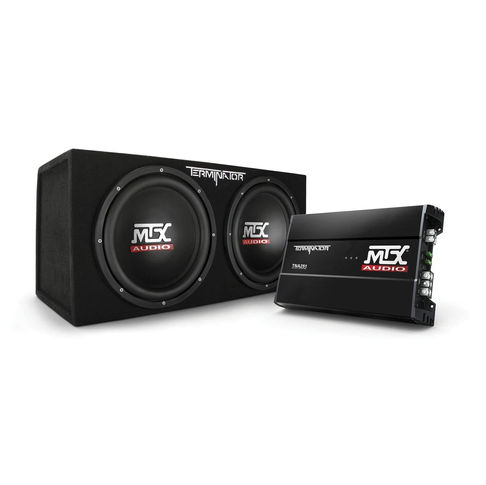 Complete amplified bass package bundles 2 x 12 subwoofer enclosure and mono block amplifier